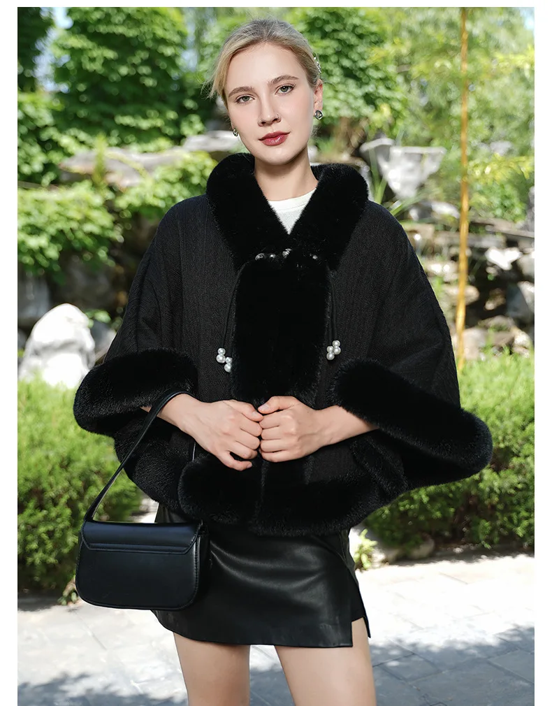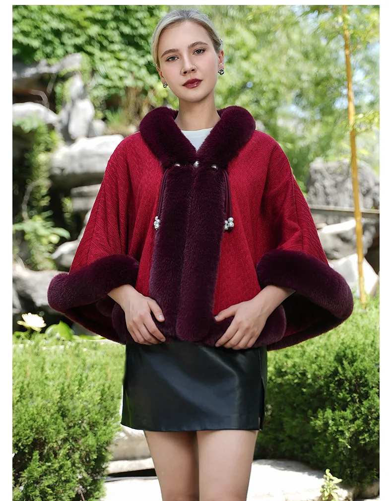 Cape poncho d’hiver à capuche en fausse fourrure