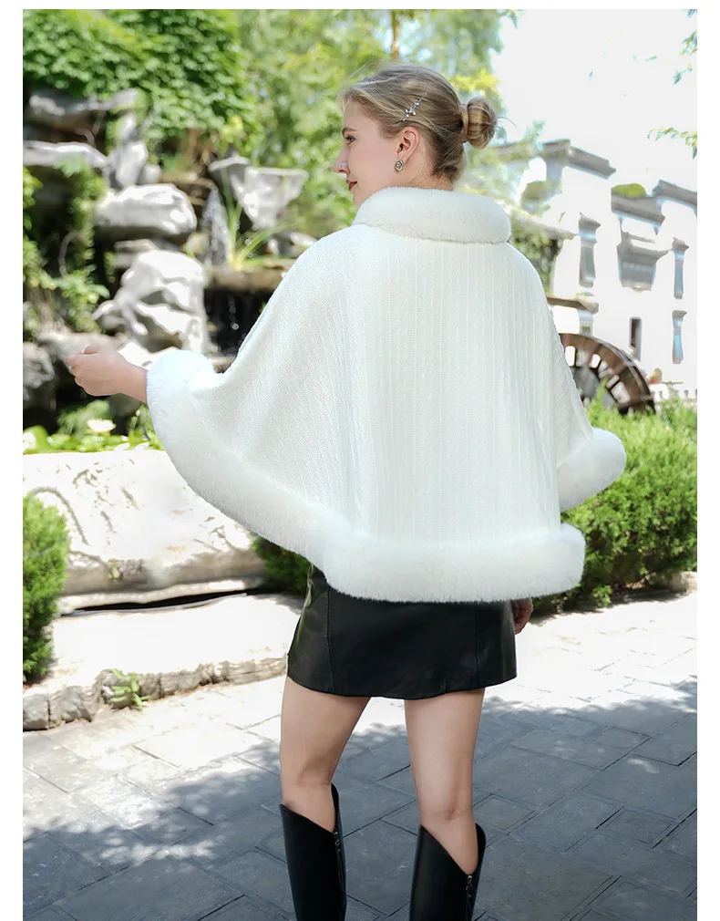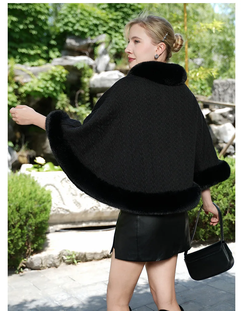 Cape poncho d'hiver à capuche en fausse fourrure