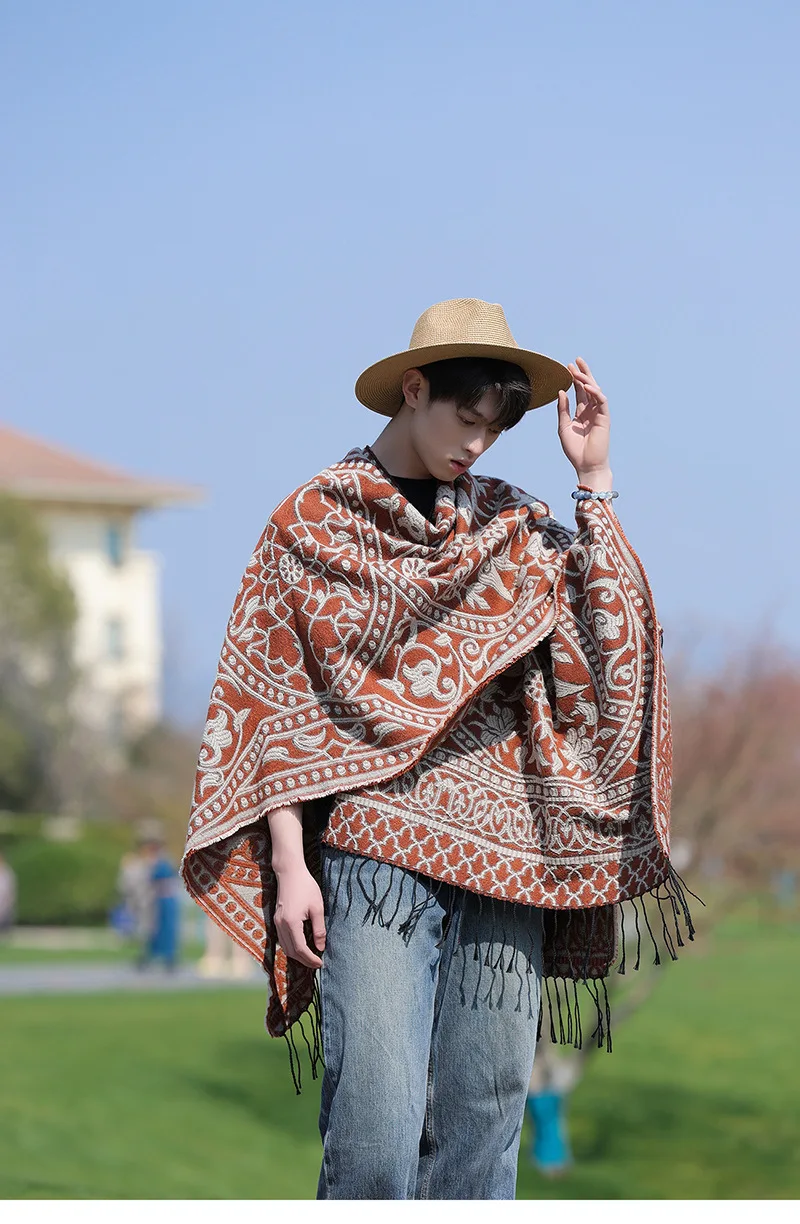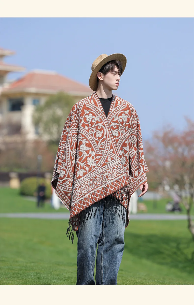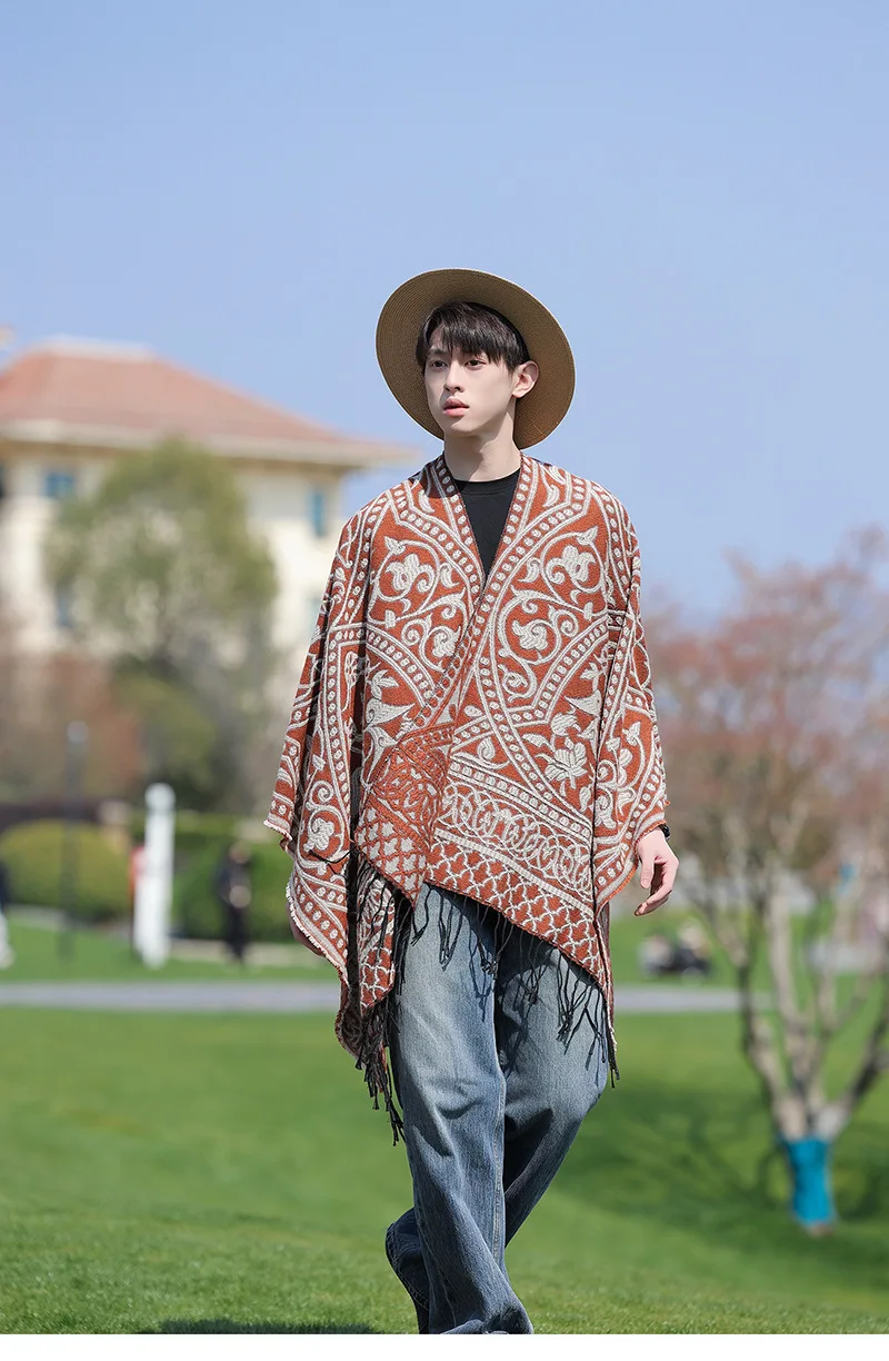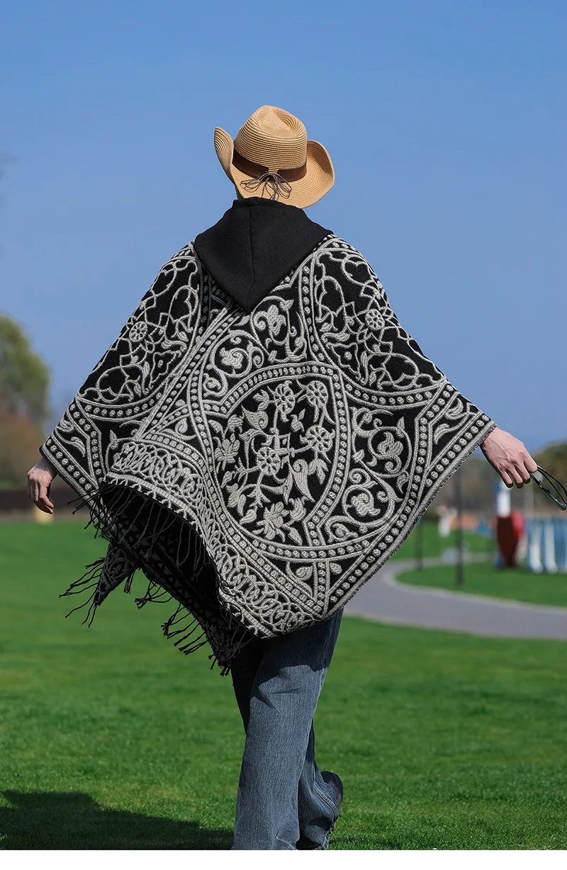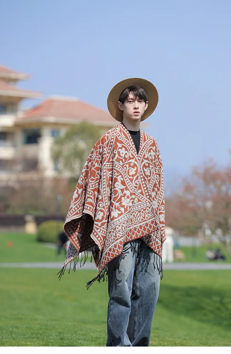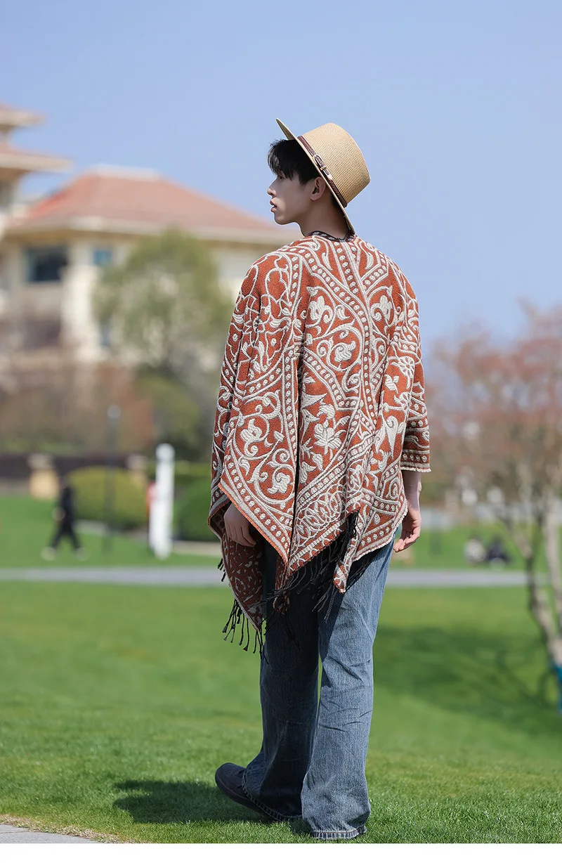 Poncho cape tricotée unisexe, style ethnique vintage