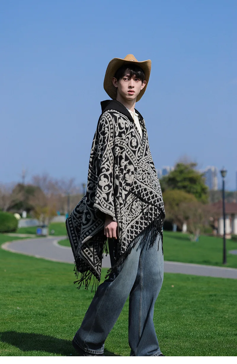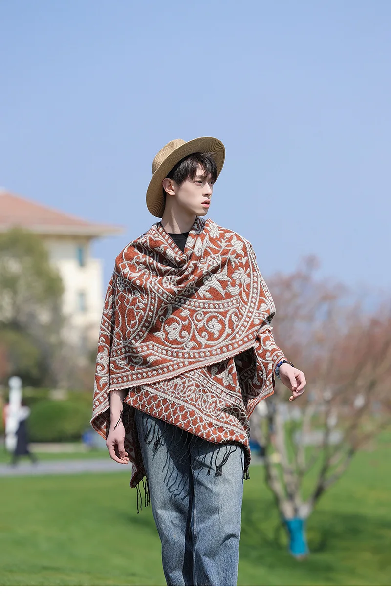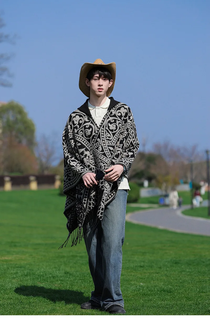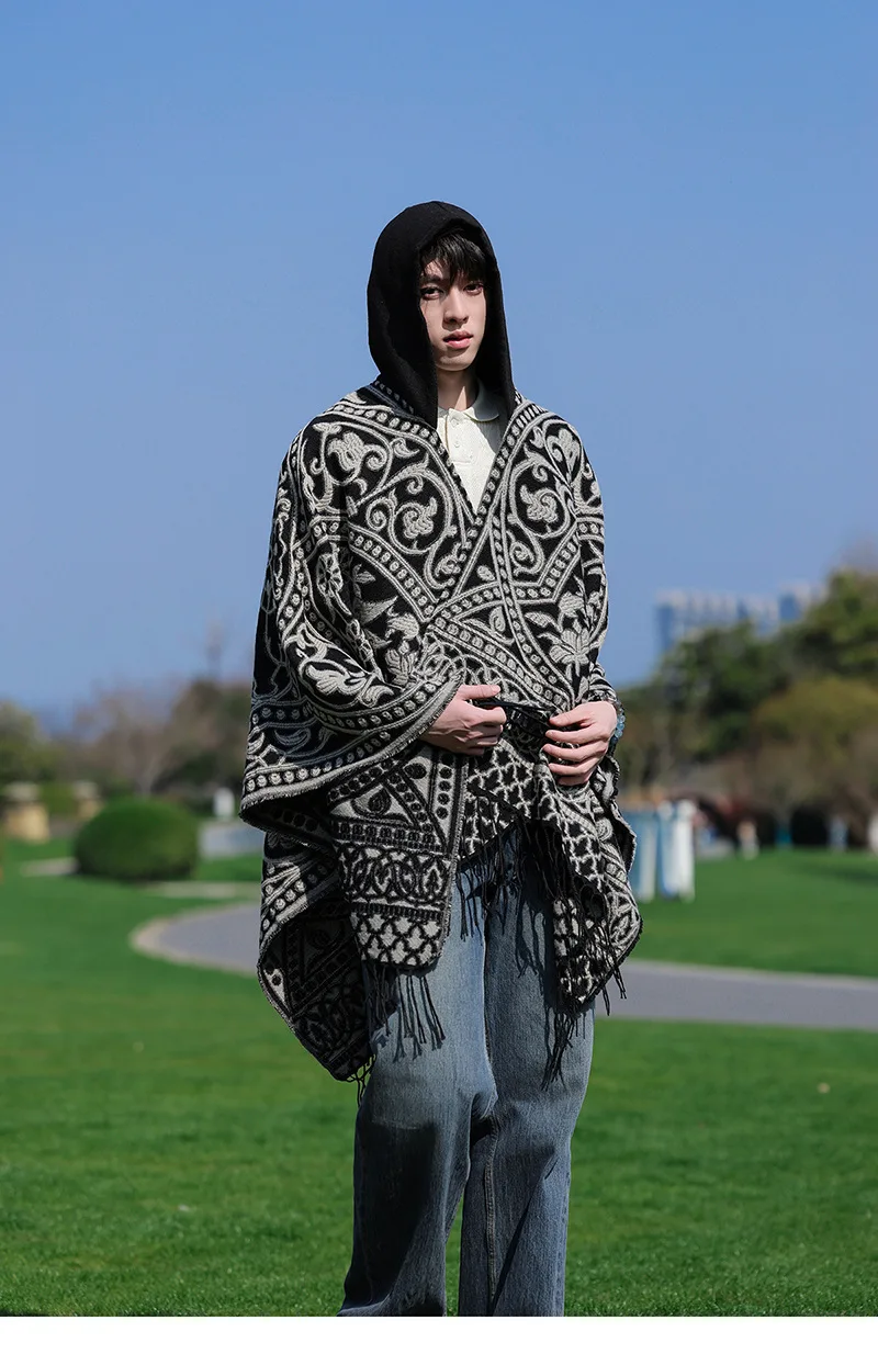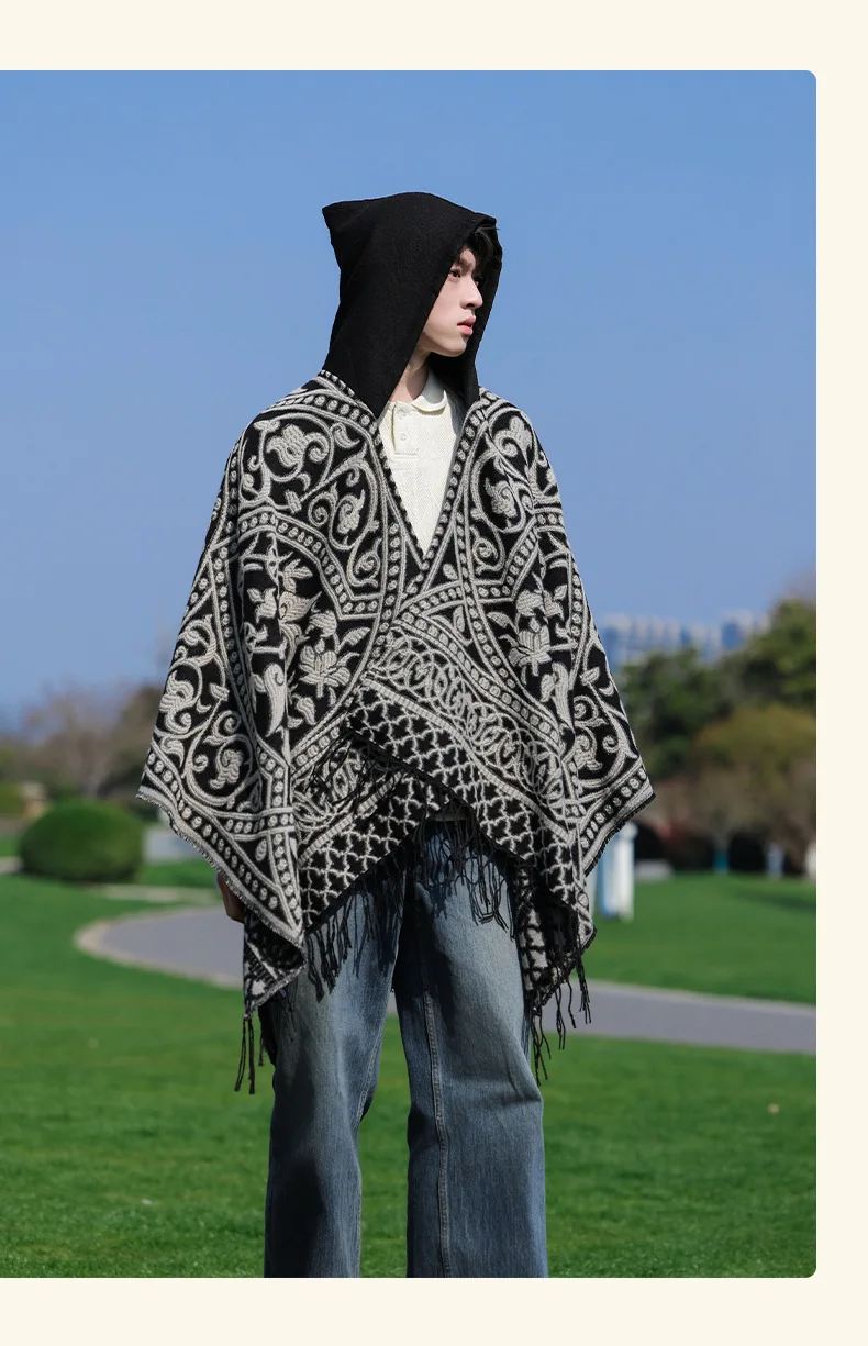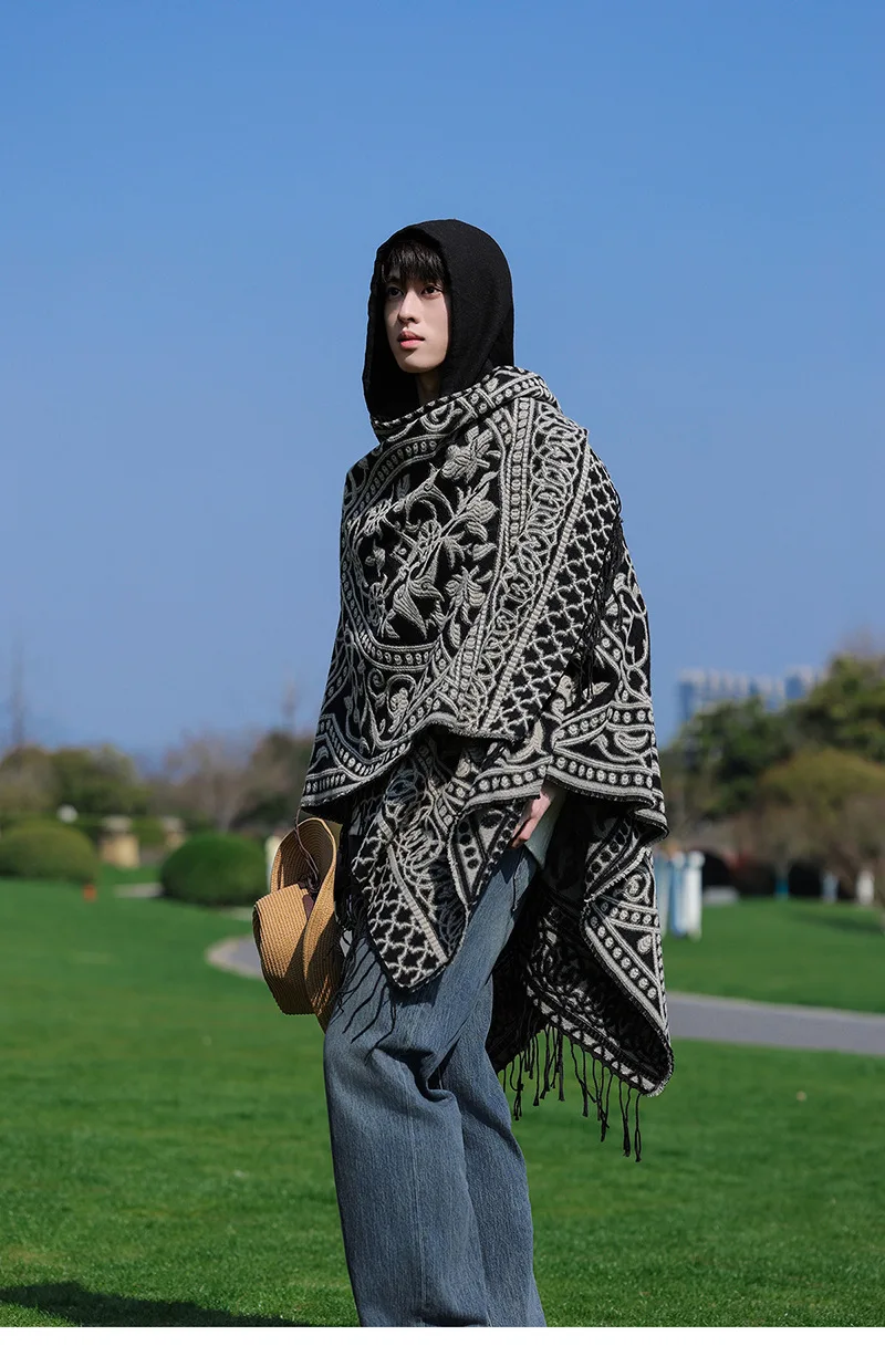 Poncho cape tricotée unisexe, style ethnique vintage