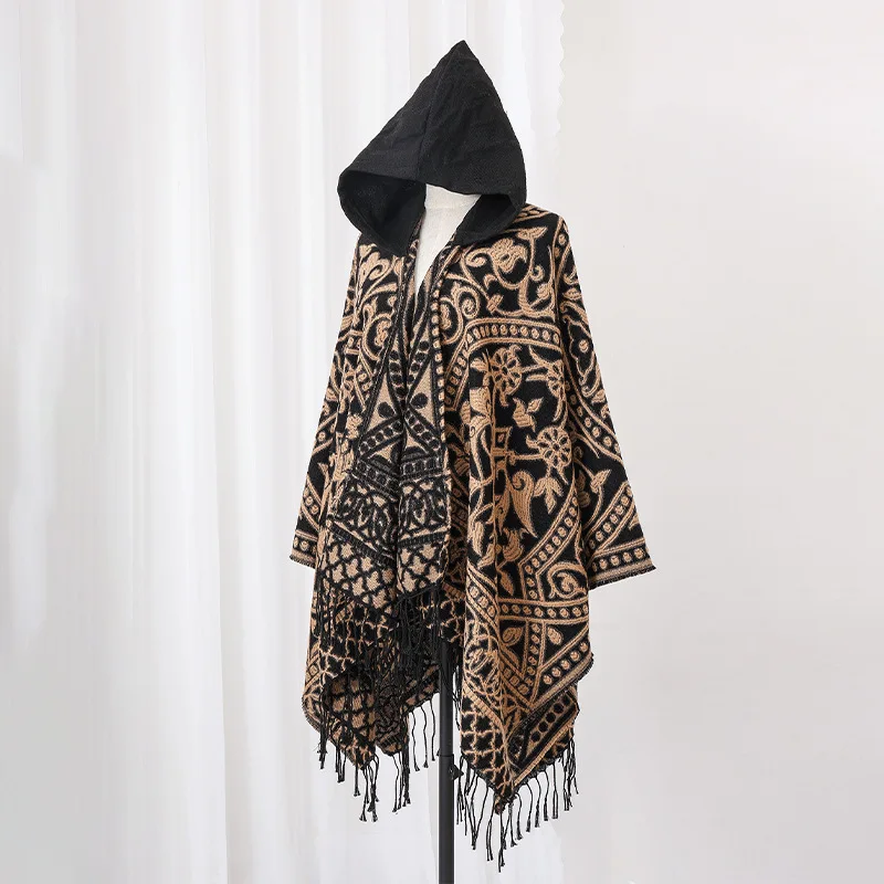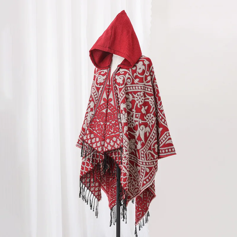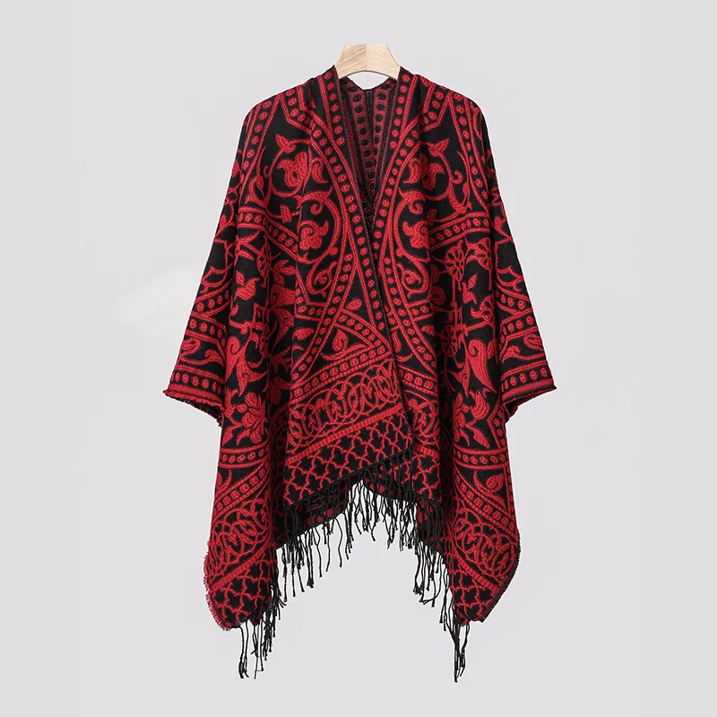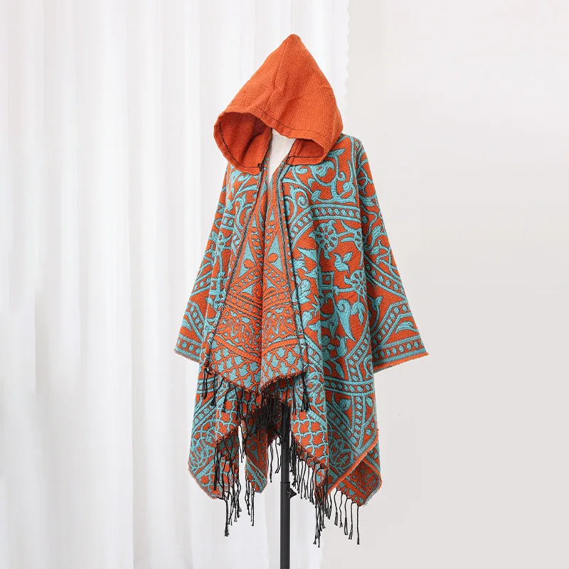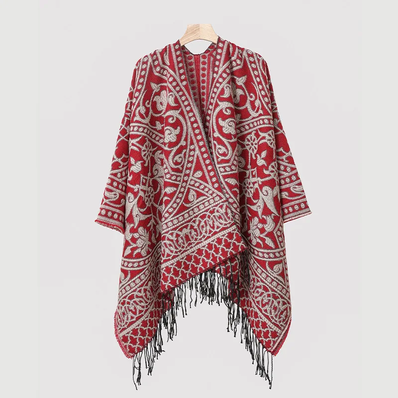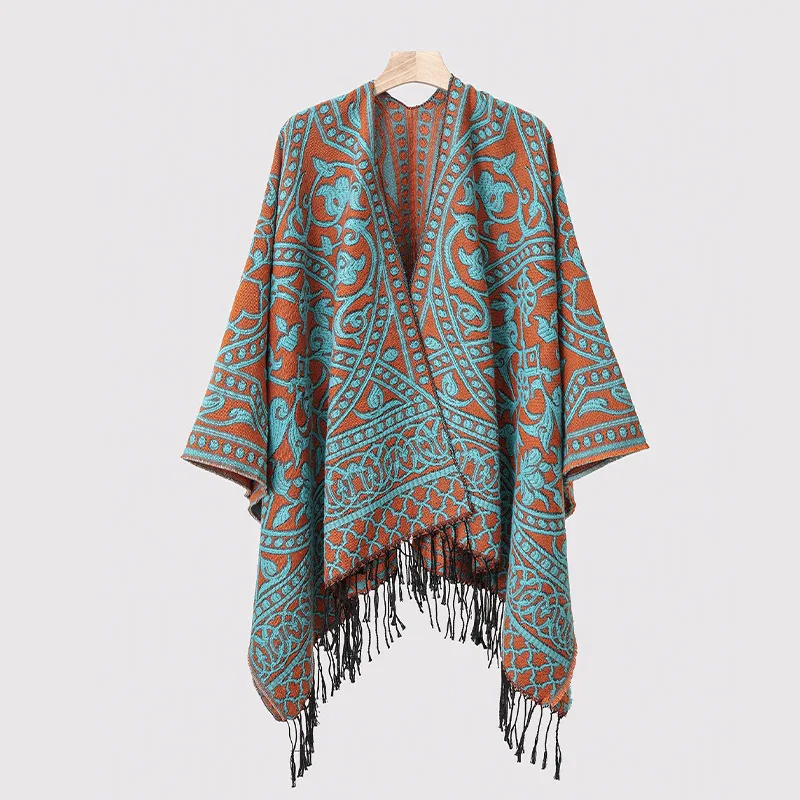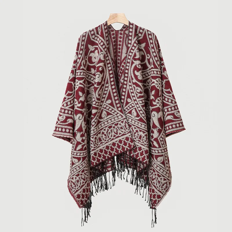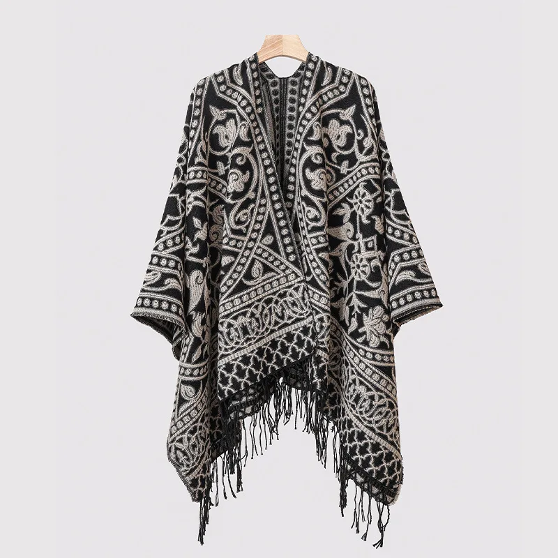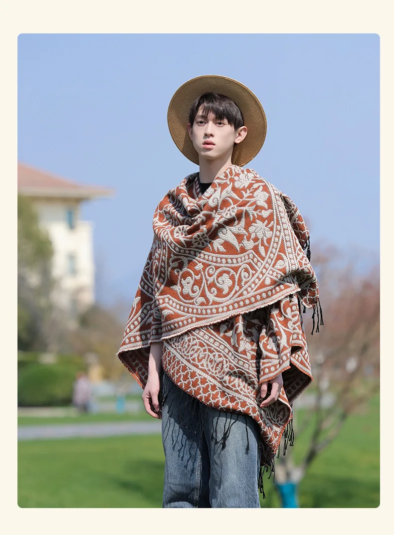 Poncho cape tricotée unisexe, style ethnique vintage