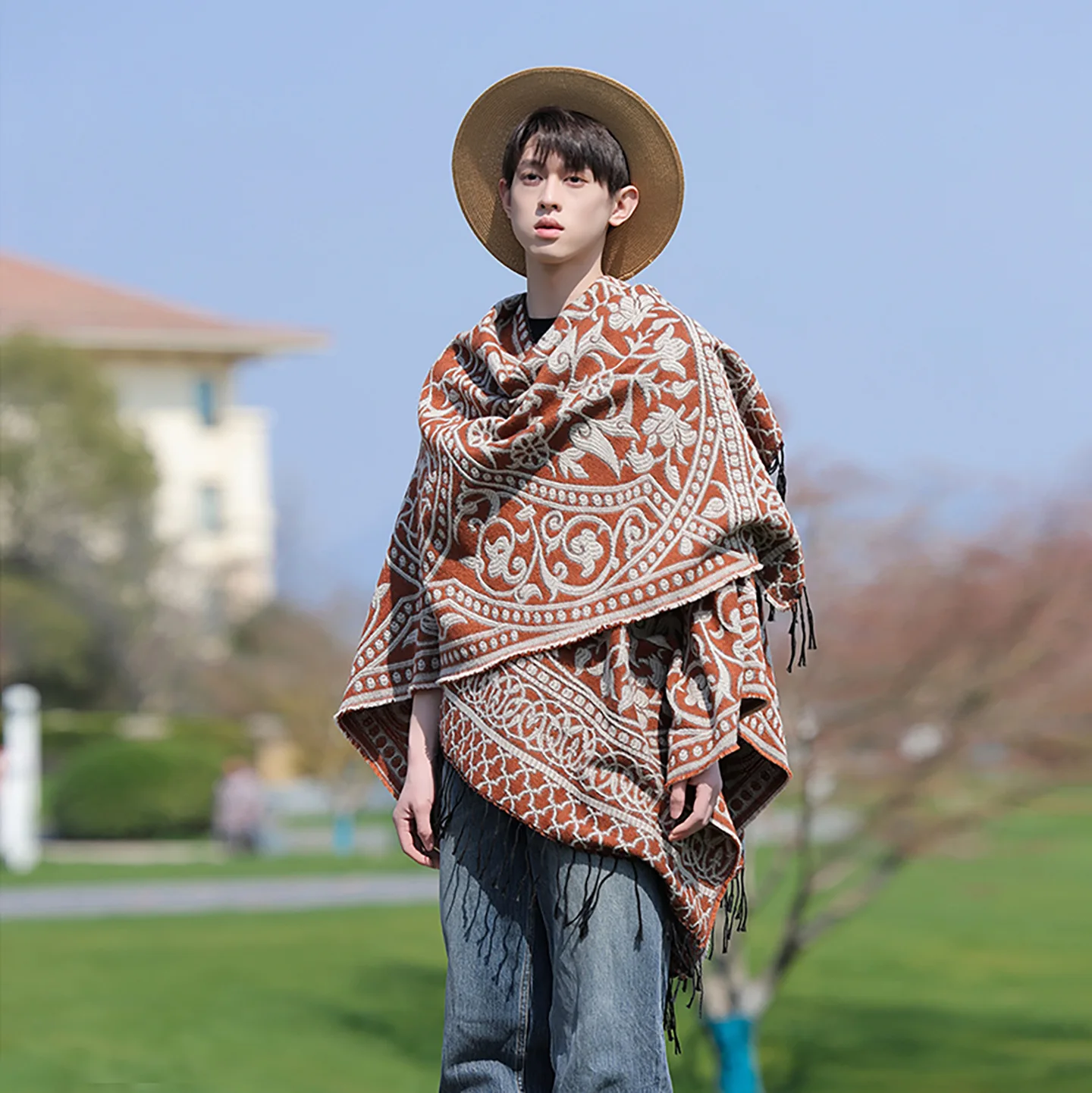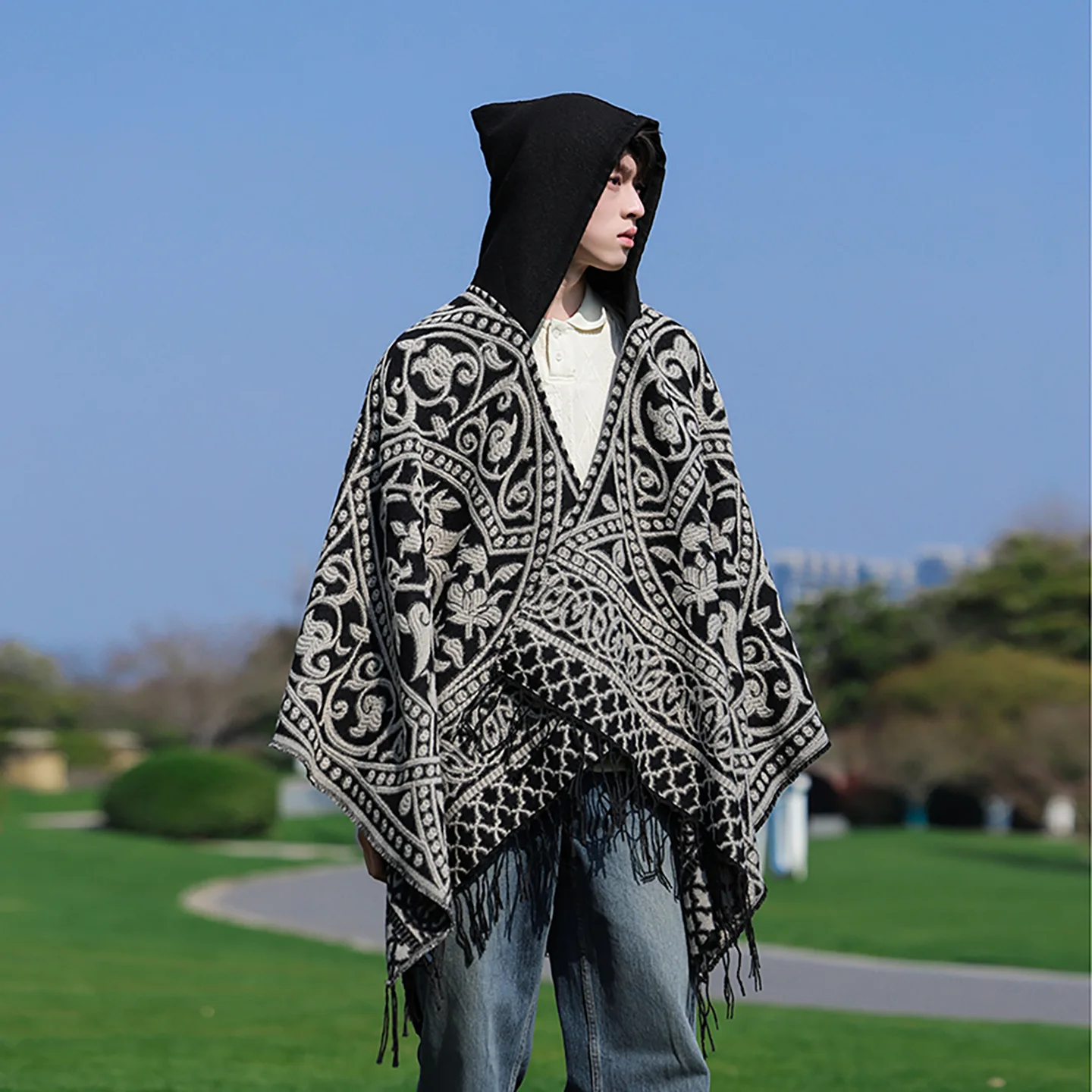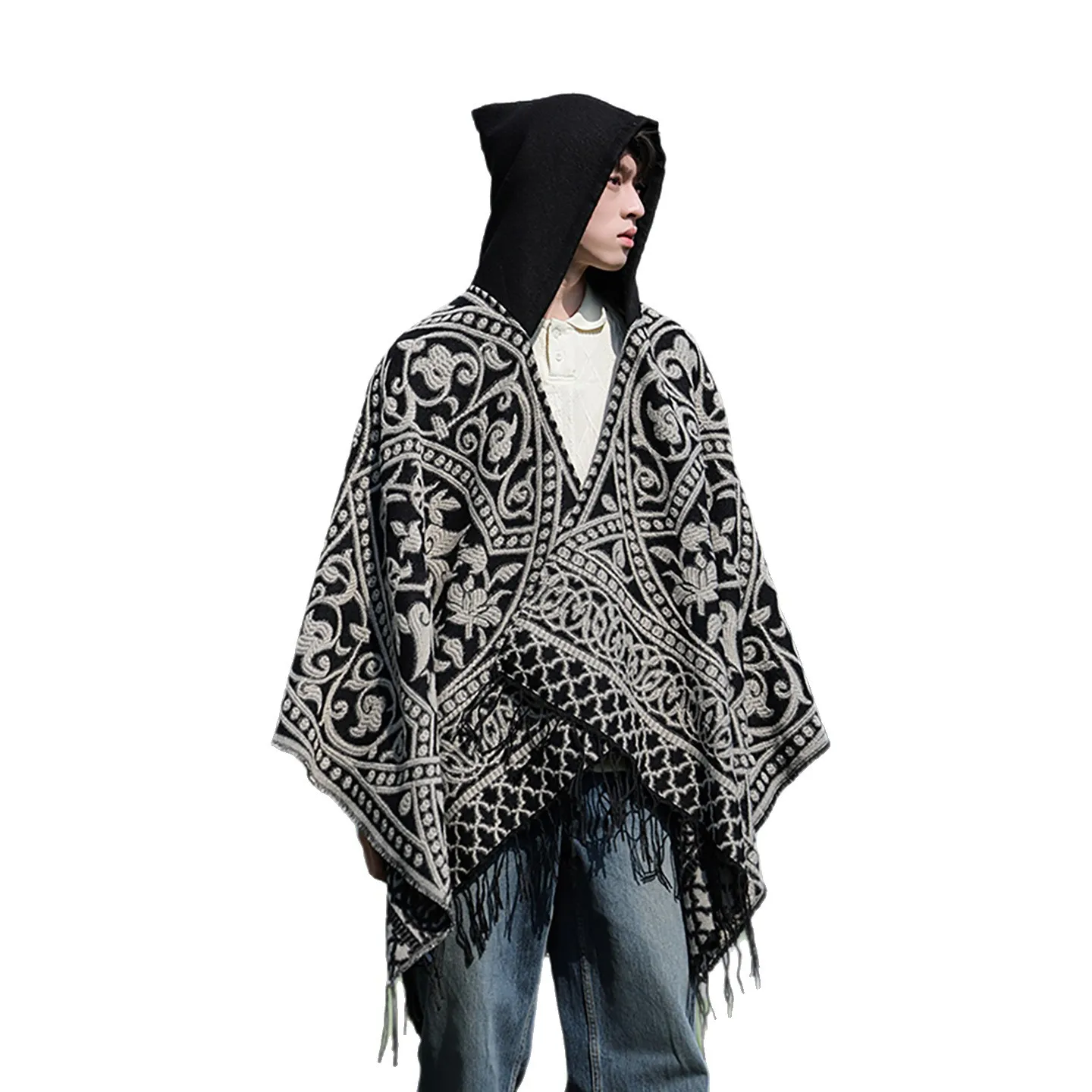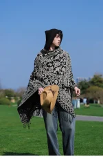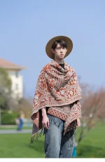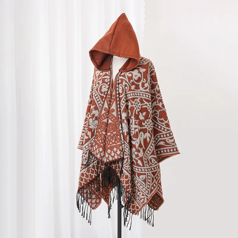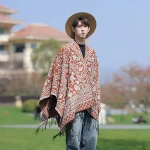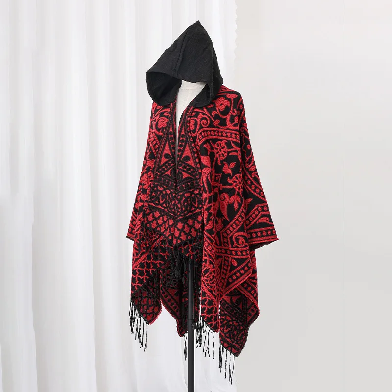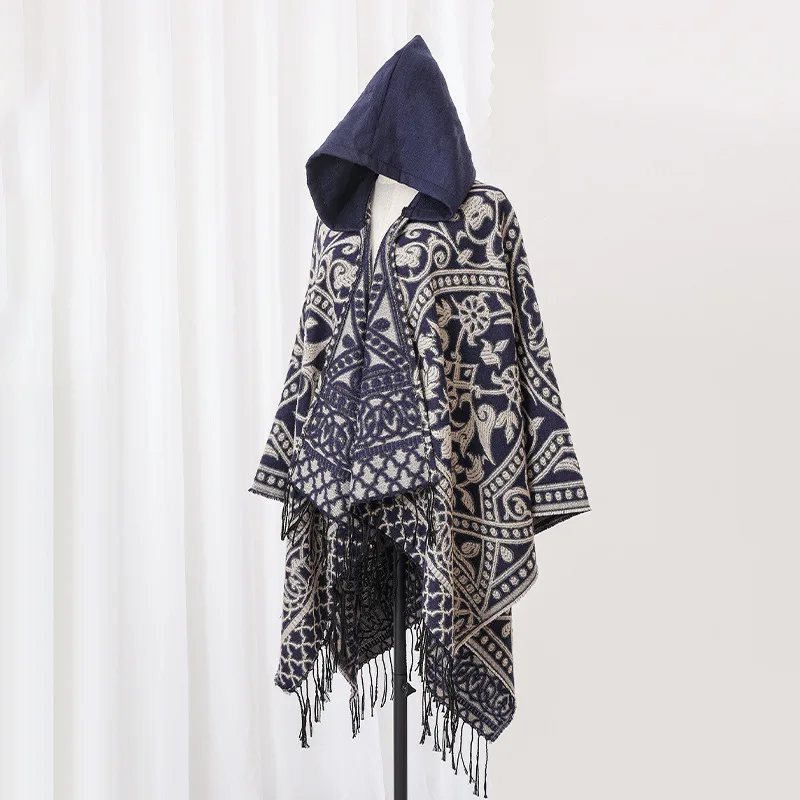 Poncho cape tricotée unisexe, style ethnique vintage