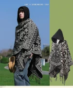 Poncho homme chaud à capuche