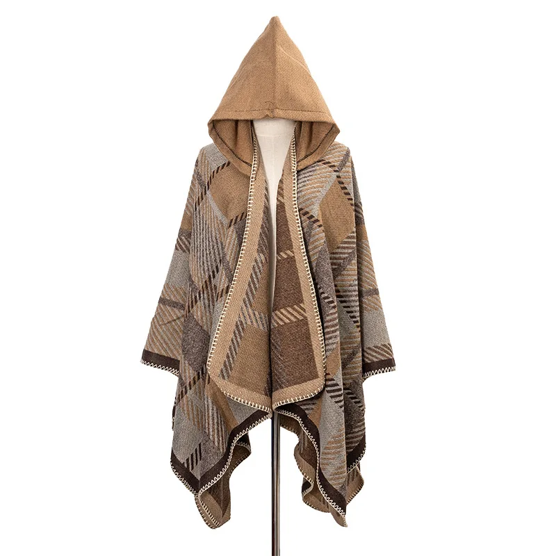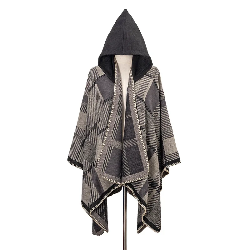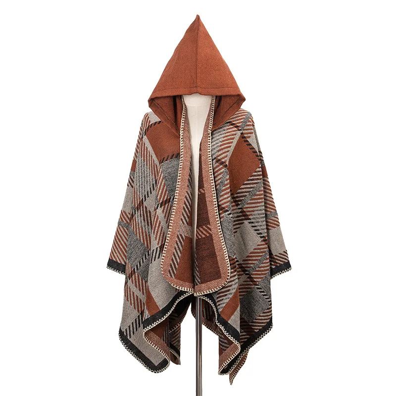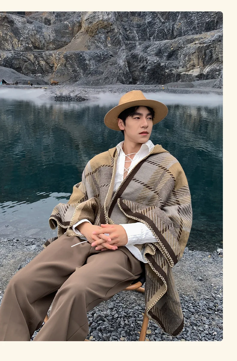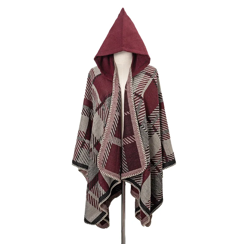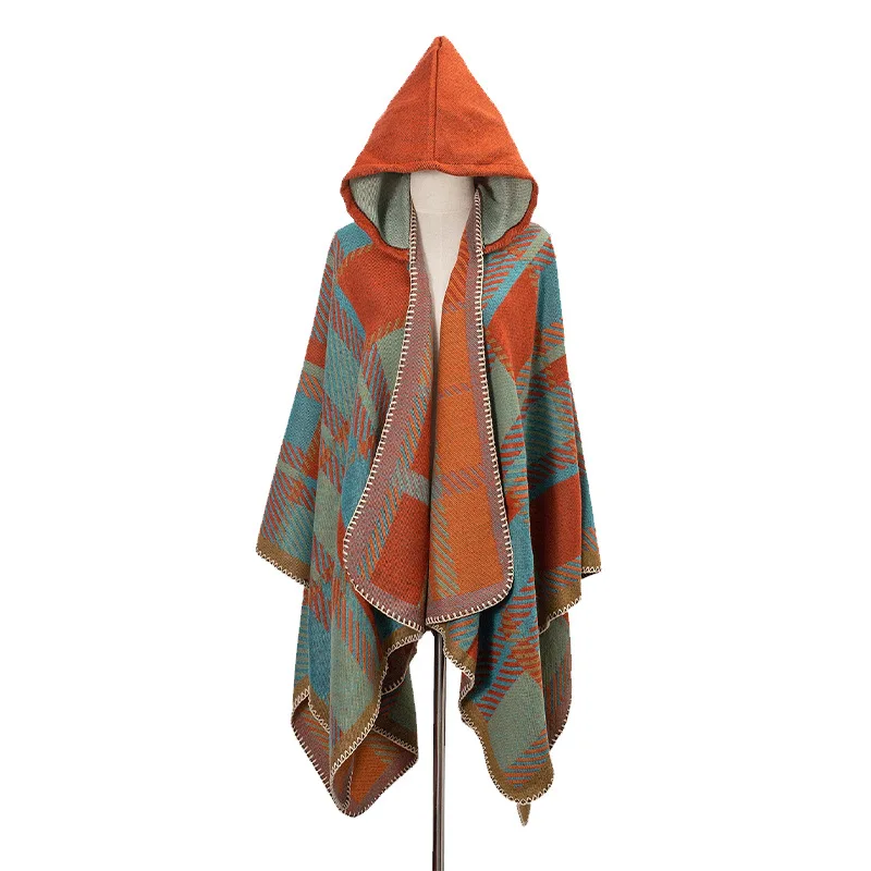 Traveling Women's Poncho Shawl Ethnic Style Tassels Hoodie Cloak Winter Warm Jacquard Outdoor Decoration Men Big Cape Blanket