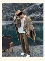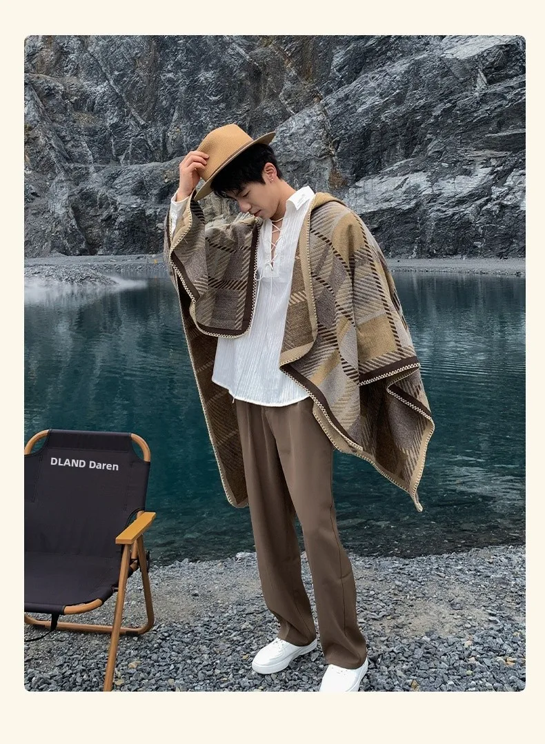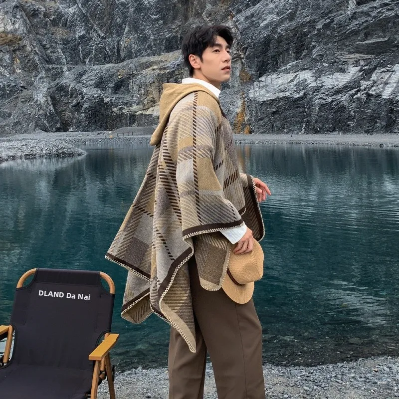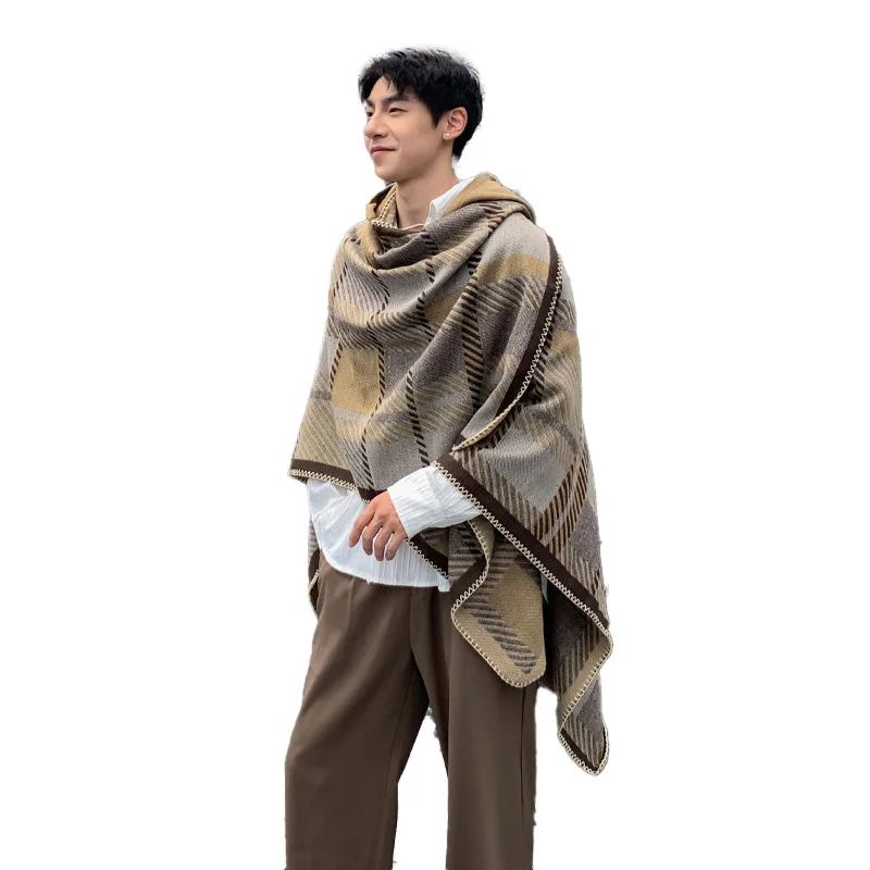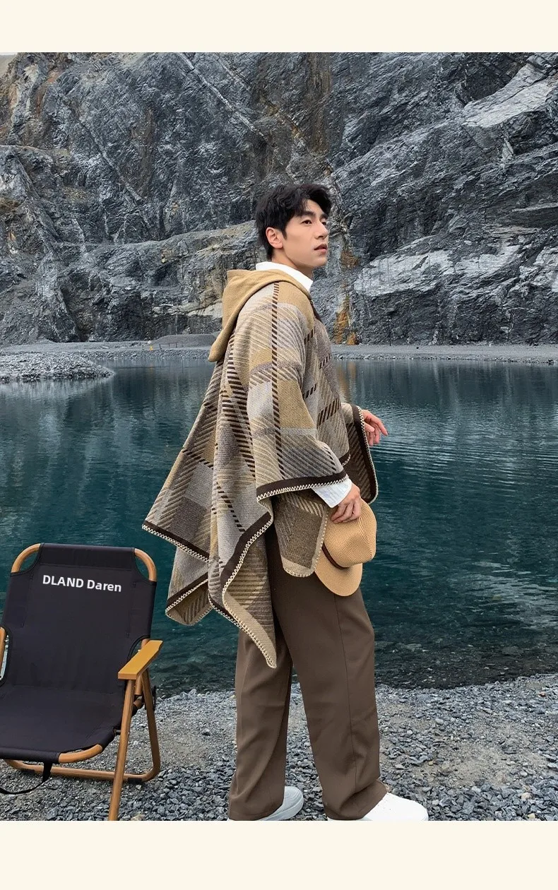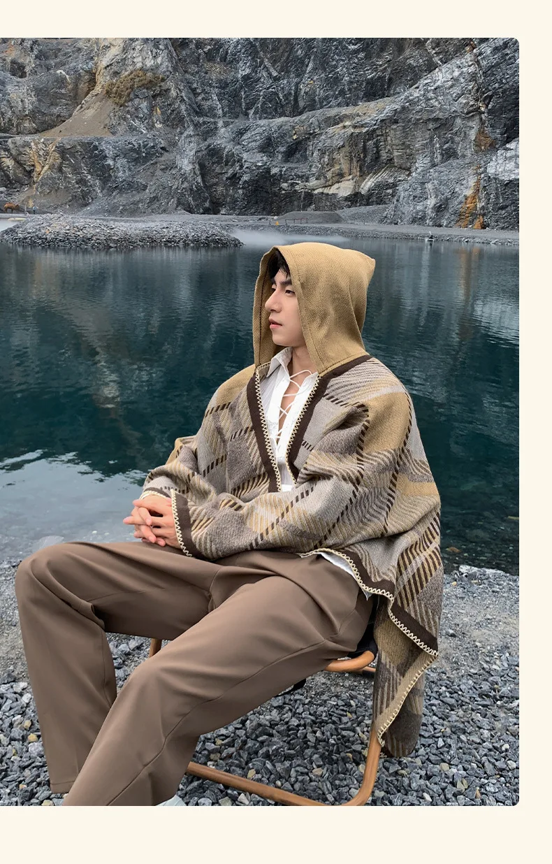 Poncho homme chaud à capuche