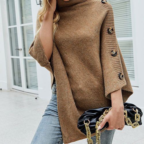 Poncho Col Roulé Boutons pour une Élégance inégalée