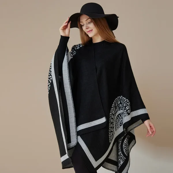 Poncho Vintage à Imprimé pour Femme