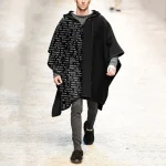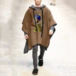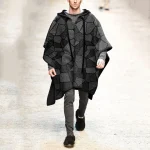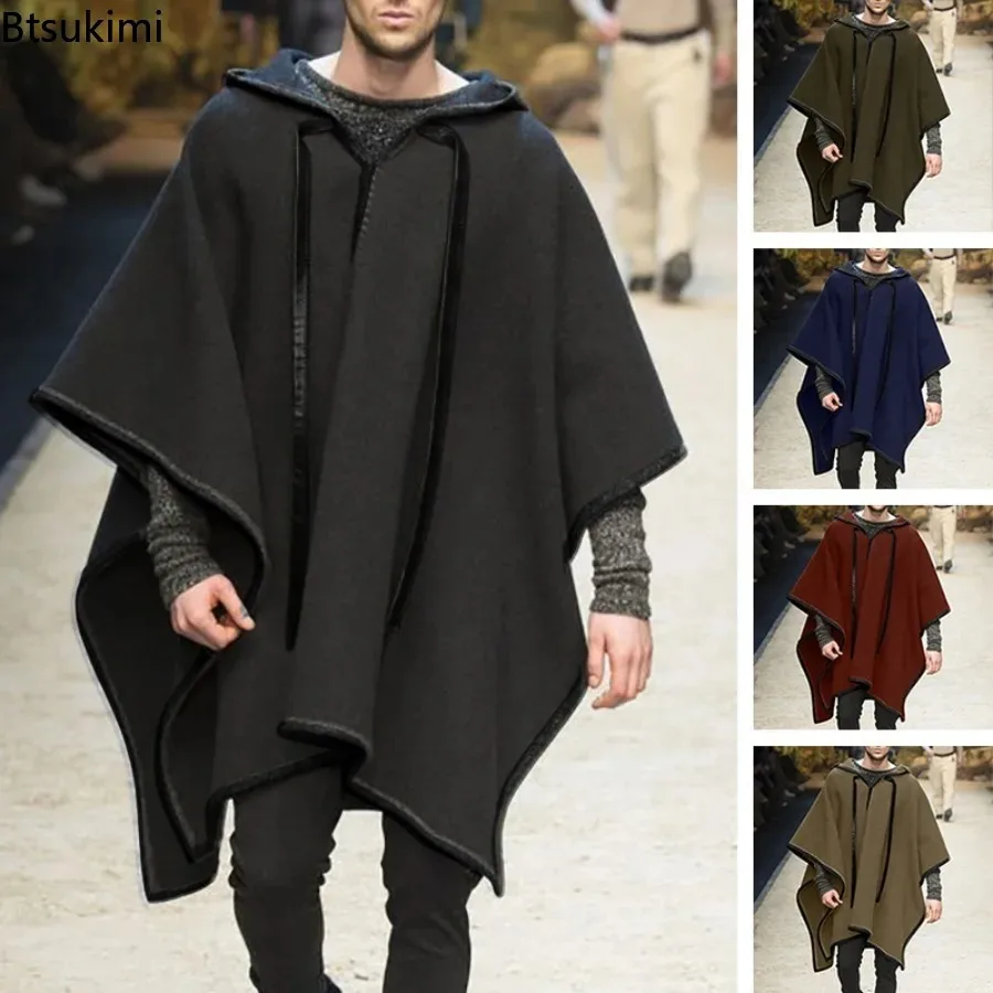 Poncho cape homme printemps-automne – Châle de plage réversible, coupe ample irrégulière à franges